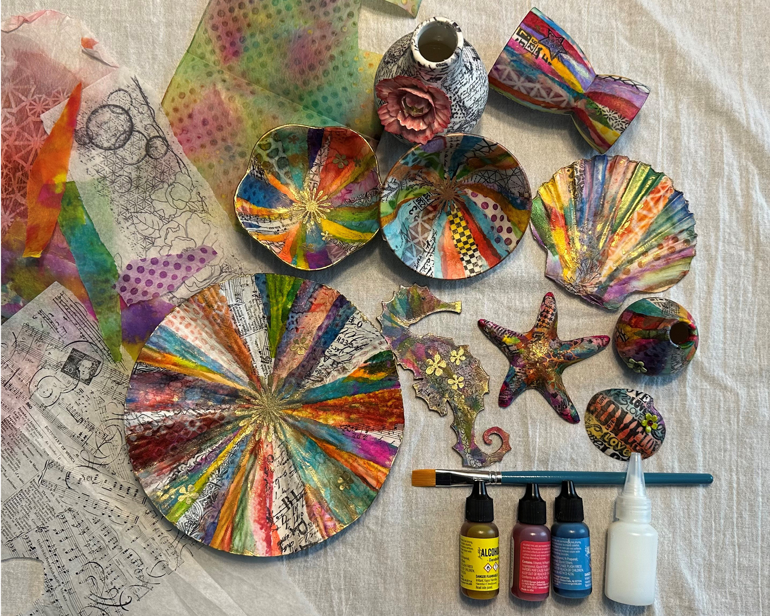 Grab a smock and dive into this fun and friendly world of alcohol-ink, collage art. No experience required! During this two-day workshop, you will learn about a popular solvent-based dye called alcohol ink and get a taste of its many exciting functions.